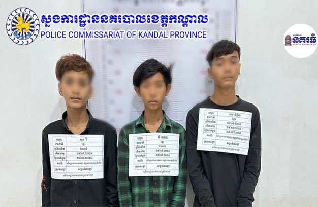 ជនសង្ស័យទាំង៣នាក់ ដែលត្រូវសមត្ថកិច្ចចាប់ឃាត់ខ្លួន រួមមាន ទី១-ឈ្មោះនី វាសនា ភេទប្រុស អាយុ១៧ឆ្នាំ មុខរបរមិនពិតប្រាកដ មានលំនៅ ភូមិលេខ៤ សង្កាត់ស្វាយរលំ ក្រុងតាខ្មៅ (មានសារធាតុញៀន)។ ទី២-ឈ្មោះមាន វិច្ឆិកា ភេទប្រុស អាយុ១៥ឆ្នាំ មុខរបរមិនពិត ប្រាកដ មានលំនៅ ភូមិលេខ៤ សង្កាត់ស្វាយរលំ ក្រុងតាខ្មៅ (មានសារធាតុញៀន) ទី៣-ឈ្មោះសុខ រី ភេទប្រុស អាយុ១៥ឆ្នាំ មុខរបរមិនពិតប្រាកដ មានលំនៅ ភូមិលេខ៤ សង្កាត់ស្វាយរលំ ក្រុងតាខ្មៅ (មានសារធាតុញៀន)។