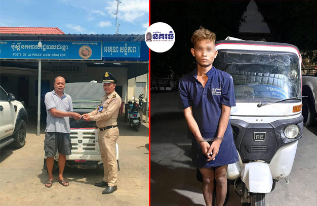 ភ្នំពេញ ៖ បុរសម្នាក់ បានទុកម៉ូតូកង់បី ១គ្រឿង នៅមុខផ្ទះ ដោយភ្លេចដកសោចេញ រួចចូលដេកលក់រហូតដល់ភ្លឺ ស្រាប់តែភ្ញាក់ឡើង បាត់ម៉ូតូកង់បី បង្កឱ្យមានការភ្ញាក់ផ្អើលឆោឡោ ប្តឹងសមត្ថកិច្ចស្រាវជ្រាវអស់ជាង១០ ម៉ោង ក៏ឈានដល់ការចាប់ខ្លួនជនសង្ស័យម្នាក់ និងដកហូតម៉ូតូកង់បី មកប្រគល់ជូនម្ចាស់វិញ។
