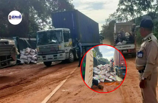 Homeសន្ដិសុខសង្គមសន្តិសុខសង្គមឡានឡើងចំណោតពេជ្រនិលមិនរួច ក្រឡាប់ចាក់អង្ករចោល