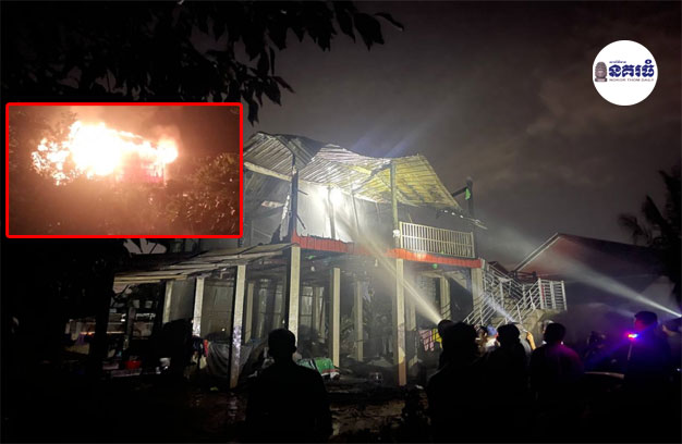 ខេត្តកណ្តាល ៖ លំនៅឋានរបស់ប្រជាពលរដ្ឋ ១ខ្នង ត្រូវបានអគ្គិភ័យឆាបឆេះអស់ទាំងស្រុង ដោយសារមូល ហេតុឆ្លងចរន្តអគ្គិសនី (ទុស្សេខ្សែភ្លើង) ធ្វើឱ្យមានអណ្តាតភ្លើងឆាបឆេះយ៉ាងសន្ធោសន្ធៅ និងលេបត្របាក់ផ្ទះខាងលើអស់។