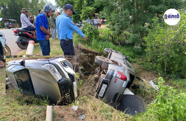 ខេត្តសៀមរាប ៖ បុរសវ័យចំណាស់ម្នាក់ បើករថយន្ត ១គ្រឿង ក្នុងល្បឿនលឿន លុះមានសត្វគោ ១ក្បាល ឆ្លងផ្លូវ ក៏ព្យាយាមគេចចង្កូត ធ្វើឱ្យធ្លាក់ផ្លូវ ក្រឡាប់ធ្លាក់ចូលក្នុងទឹកប្រឡាយសំណាងល្អមិនបង្កឱ្យមនុស្សណាម្នាក់រងគ្រោះថ្នាក់ឡើយ។