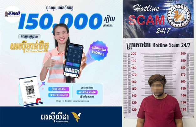 តាមប្រភពសមត្ថកិច្ច បានឱ្យដឹងថា កាលពីថ្ងៃទី០៥ ខែសីហា ឆ្នាំ២០២៤ ក្រុមការងារ Hotline Scam 24/7 របស់អគ្គស្នងការដ្ឋាននគរបាលជាតិ បានស្រាវជ្រាវឃាត់ខ្លួនជនសង្ស័យម្នាក់ឈ្មោះ ហ.ស.រ ជាប់ពាក់ព័ន្ធនឹងករណីក្លែងបន្លំជាបុគ្គលិកធនាគារអេស៊ីលីដា ឆបោកប្រាក់ពី ជនរងគ្រោះ សរុបប្រមាណជាង ៣ម៉ឺនដុល្លារ។ប្រតិបត្តិការនេះធ្វើឡើងក្រោមការអនុញ្ញាតពីនាយឧត្តមសេនីយ៍ ស ថេត អគ្គស្នងការនគរបាលជាតិ និងដឹកនាំបញ្ជាផ្ទាល់របស់លោកឧត្តមសេនីយ៍ឯក ជា ពៅ អគ្គស្នងការរង និងជាប្រធានក្រុមការងារ Hotline Scam 24/7 ក្រោមការសម្របសម្រួលនីតិវិធីពីលោកព្រះរាជ អាជ្ញា នៃអយ្យការអមសាលាដំបូងរាជធានីភ្នំពេញ។