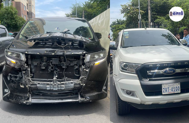 ភ្នំពេញ ៖ រថយន្តទំនើប ចំនួន២គ្រឿង បើកបរក្នុងល្បឿនលឿនដូចគ្នា លុះមកដល់ត្រង់ចំណុចផ្លូវបំបែកជា៤ ជ្រុលទៅបុកគ្នាពេញទំហឹង បណ្តាលឱ្យរងការខូចខាតផ្នែកខាងមុខរៀងខ្លួន។
