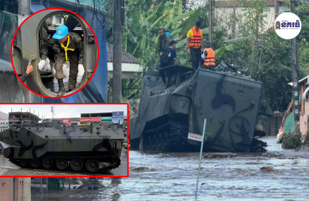 ឈៀងរ៉ាយ (ថៃ) ៖ កងទ័ពជើងគោកថៃ បានចូលរួមជាមួយកងទ័ពជើងទឹក ក្នុងការចុះអន្តរាគមន៍សង្គ្រោះប្រជនដែលរងគ្រោះដោយទឹកជំនន់ធ្ងន់ធ្ងរ នៅស្រុកម៉ែសៃ ខេត្តឈៀងរ៉ាយ ដោយប្រើរថពាសដែក ក្នុងការចូលទៅក្នុងតំបន់លិចទឹក ដើម្បីជួយអ្នកភូមិដែលជាប់គាំងនៅក្នុងផ្ទះ និងខ្លះនៅលើដំបូលផ្ទះ។