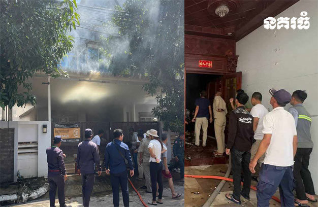 ភ្នំពេញ ៖ ផ្ទះវីឡាមួយកន្លែង ដែលម្ចាស់មិននៅ (ចាក់សោចោល) ស្រាប់តែកើតមានអគ្គិភ័យឆាបឆេះ និងមានផ្សែងហុយខ្មួលខ្មាញ់ ផ្អើលដល់អ្នកជិតខាង រាយការណ៍ប្រាប់សមត្ថកិច្ច និងទាក់ទងសុំអន្តរាគមន៍រថយន្តពន្លត់អគ្គិភ័យ ចុះមកជួយបាញ់ទឹកពន្លត់ អស់ចំនួន៥ឡាន ទើបអាចគ្រប់គ្រងស្ថានការណ៍បាន។
