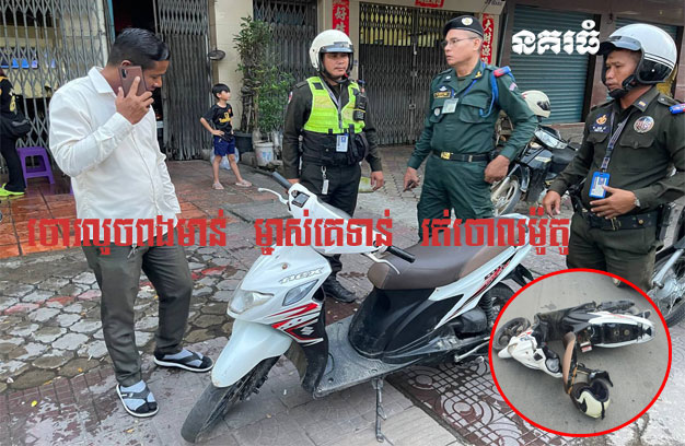 ភ្នំពេញ ៖ ជនសង្ស័យ២នាក់ បានជិះម៉ូតូ ១គ្រឿង មកធ្វើសកម្មភាពដើរលួចពងមាន់ ដឹកតាមរថយន្ត គាប់ជួនត្រូវម្ចាស់គេឃើញទាន់ ក៏ជិះម៉ូតូប្រដេញពីក្រោយយ៉ាងប្រកិត ធ្វើឱ្យជនសង្ស័យភ័យ ផ្តួលម៉ូតូចោល រួចនាំគ្នារត់គេចខ្លួនបាត់អស់ ចំណែកម៉ូតូ ត្រូវបានសមត្ថកិច្ចចុះទៅអូសយកមករក្សាទុក ដើម្បីស្រាវជ្រាវបន្ត។