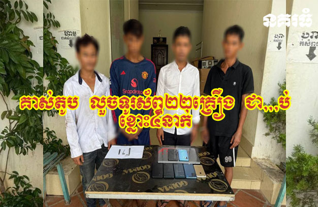 គា…/ស់តូប លួ…/ចទូរស័ព្ទ២២គ្រឿង ជា…/ប់ខ្នោះ៤នាក់