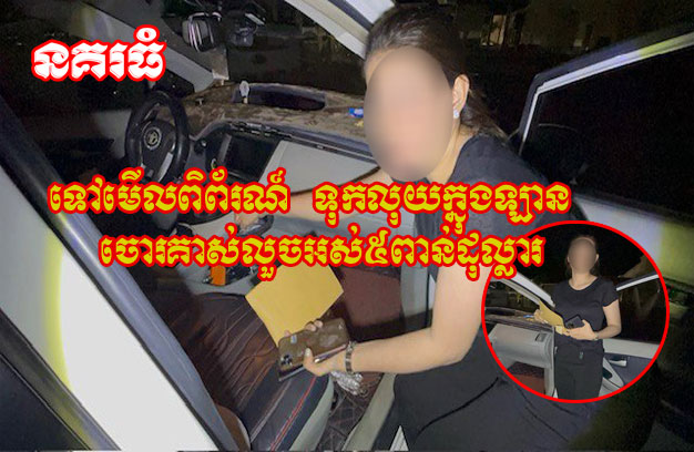 ភ្នំពេញ ៖ ស្ត្រីម្នាក់ បានបើករថយន្ត ១គ្រឿង ដឹកកូនទៅមើលការតាំងពិព័រណ៍នៅកោះពេជ្រ លុះទៅដល់ បានចតរថយន្ត រួចនាំកូនចុះទៅដើរមើលកម្មវិធីតាំងពិព័រណ៍អស់ចិត្ត ត្រឡប់មកវិញ រកលុយទិញនំឱ្យកូនហូប ទើប ដឹងបាត់លុយ ជាង៥ពាន់ដុល្លារ បង្កឱ្យមានការភ្ញាក់ផ្អើលទាំងកណ្តាលយប់។