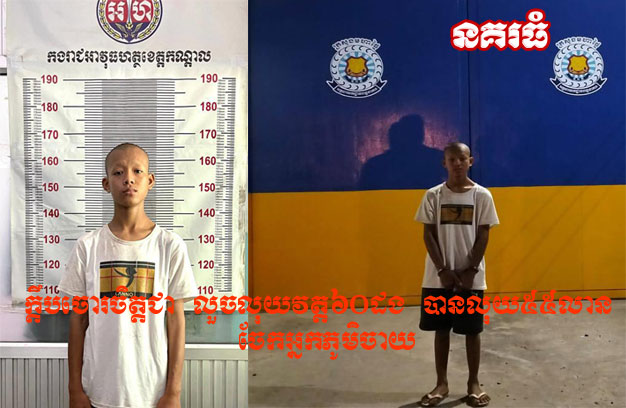 ខេត្តកណ្តាល ៖  ក្តឹបចោរ ចំនួន២នាក់ ម្នាក់១០ឆ្នាំ និងម្នាក់ទៀតអាយុ១៥ឆ្នាំ បានធ្វើសកម្មភាពដើរលួចលុយតាមវត្ត បានសម្រេចប្រមាណជិត ៦០លើក សរុបបានលុយ ៥៥លានរៀល ប៉ុន្តែក្តឹបចោរនេះ ជាចោរចិត្តជា ដោយរាល់ពេលលួចលុយបាន តែងយកទៅចែកក្មេងៗនិងចាស់ៗនៅក្នុងភូមិ សល់ប៉ុន្មាន ដើរលេងល្បែងនិងស៊ីចាយ។ ទីបំផុតអស់លក្ខណ៍ ត្រូវបានកម្លាំងជំនាញអាវុធហត្ថ បើកការស្រាវជ្រាវឃាត់ខ្លួនបានក្តឹបចោរម្នាក់អាយុ១៥ឆ្នាំ ខណៈក្តឹបចោរម្នាក់ទៀត អាយុ១០ឆ្នាំ កំពុងរត់គេចខ្លួន។