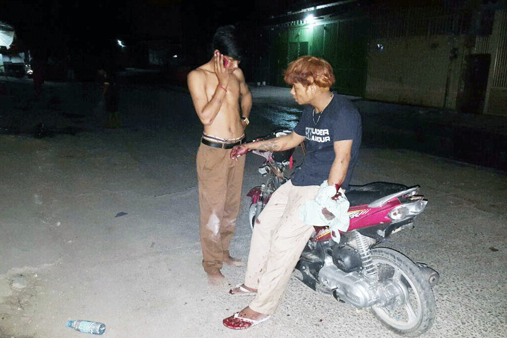 ភ្នំពេញ៖យុវជន២នាក់រងរបួសធ្ងន់និងស្រាលខណះជិញម៉ូតូដើរលេងពេលយប់ជួបក្រុមក្មេងទំនើងដេញកាប់។ករណីនេះបង្ករភ្ញាក់ផ្អើកាលពីម៉ោង០២និង៣០នាទីទាបភ្លឺឈានចូលថ្ងៃទី២៦កុម្ភះ២០១៧នៅផ្លូវបេតុងចូលវត្តអង្គតាមិញភូមិប៉ប្រកខាងត្បូងសង្កាត់កាកាបខណ្ឌពោធិ៍សែនជ័យ។