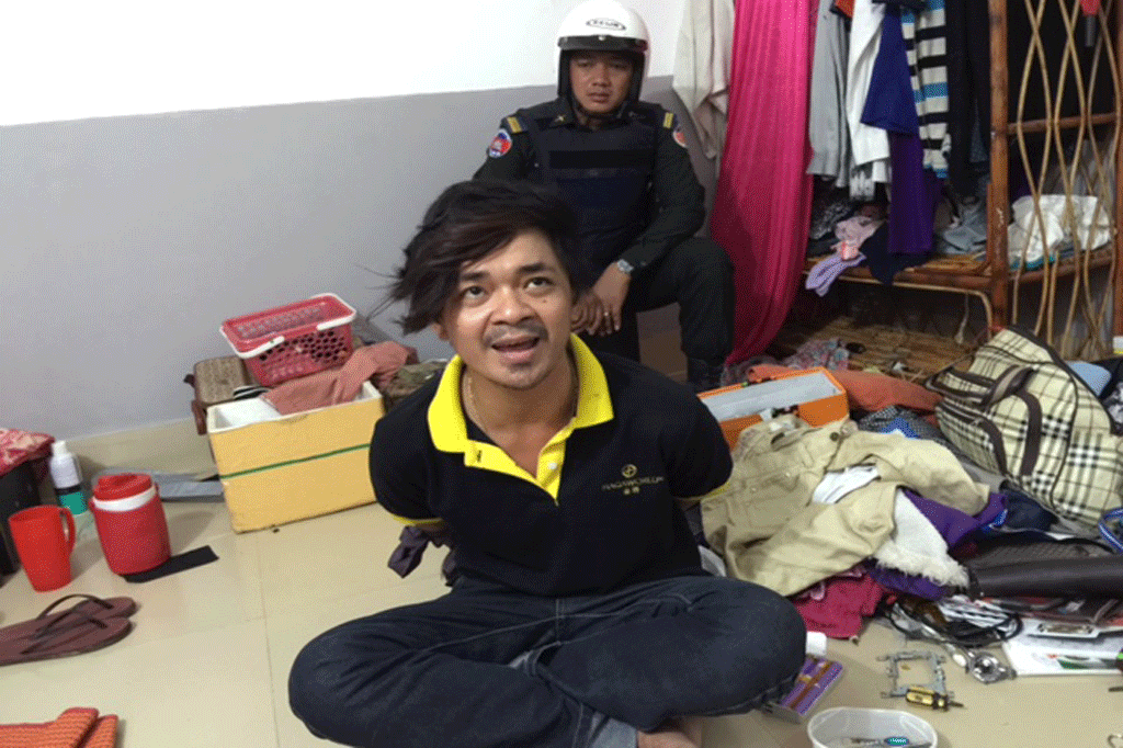 ប្រភពពត៍មានពីកម្លាំងកងរាជអាវុធហត្ថខណ្ឌមានជ័យបានប្រាប់ថាដោយកម្លាំងជំនាញសង្ស័យបុរសម្នាក់ជួញដូរថ្នាំញៀនហើយក៏ធ្វើការឃាត់ខ្លួនពេលជនសង្ស័យដើរតាមផ្លូវ២៧១សង្កាត់បឹងទំពុន ខណ្ឌមានជ័យហើយក្រោយពីឃាត់ខ្លួនយកទៅសាកសួរនាំនៅកងរាជអាវុធហត្ថខណ្ឌមានជ័យហើយជនមិនសារភាពទើបសុំគោលការណ៍ពីថ្នាក់លើរួចនិងមានការសម្របសម្រួលពីលោក សៀក សុខព្រះរាជអាជ្ញារងអមសាលាដំបូងរាជធានីភ្នំពេញនិងសហការជាមួយមន្រ្តីសាលាសង្កាត់និងមេភូមិឈានដល់ឆែកឆេរដល់បន្ទប់ជួលជនសង្ស័យហើយពេលនោះដោយមិត្តស្រីរបស់ជនសង្ស័យនៅផ្ទះបានបើកទ្វាអោយចូលឆែកតាមសម្រួលក្រោយពីឆែកឆេររកឃើញឧកបរណ៍សំរាប់ជក់ប្រើប្រាស់ថ្នាំញៀន១កំប្លេនិងថង់ប្លាសិ្ទចសំរាប់ថ្នាំញៀនមួយចំនួននិងដែកកេះចំនួន២និងកន្រ្តៃចំនួន១រួមនិងកាំភ្លើងជ័រចំនួន១ដើមនិងដែកមូលតាន់ចុងស្រួច១ដើមហើយក្រោយពីឆែកត្រួតពិនិត្យចប់និងធ្វើកំណត់ហេតុដកហូតវត្ថុតាងទាំងអស់ដោយឡែកស្រ្តីជាមិត្តស្រីមិនពាក់ព័ន្ធហើយក៏មិនបានឃាត់ខ្លួនទេរាល់សំភារះមិនដកហូតនិងបន្ទប់ជួលប្រគល់អោយមិត្តស្រីរបស់ជនសង្ស័យចំណែកជនសង្ស័យនិងវត្ថុតាងបញ្ជូលទៅកងរាជអាវុធហត្ថរាជធានីភ្នំពេញដើម្បីចាត់ការបន្ត ។