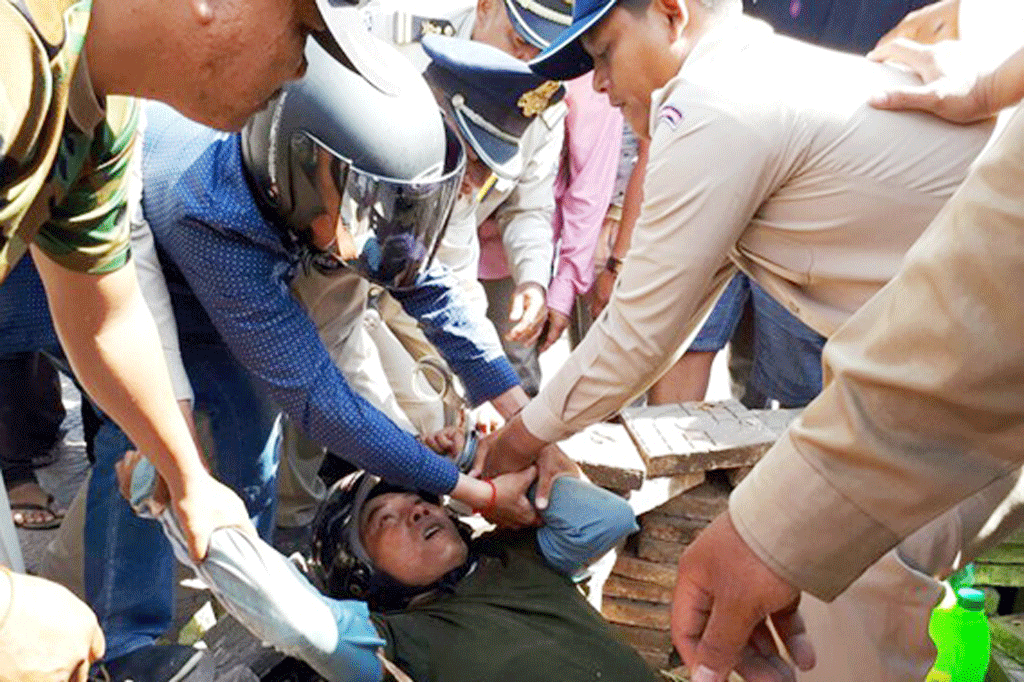 ភ្នំពេញ ៖ បុរសជាអ្នករត់ម៉ូតូឌុបម្នាក់ ឈឺបត់ជើងតូចខ្លាំងពេក រកបង្គន់អនាម័យមិន ទាន់ ក៏អែបម៉ូតូឈប់ក្បែរចិញ្ចើមផ្លូវ ឈរបត់ ជើងតូច នៅមុខដីឡូតិ៍ទំនេរមួយកន្លែង លុះ ពេលរៀបឡើងបើកម៉ូតូចាកចេញទៅវិញ ក៏ ស្រាប់តែត្រូវបុរសមានសតិមិនប្រក្រតីម្នាក់ ទាញ កូនញញួរមកវាយសំពងចំផៃមុខយ៉ាងចាស់ដៃ បណ្តាលឱ្យបែកមុខមាត់រងរបួសធ្ងន់ កាលពី វេលាម៉ោង២និង២៥នាទីរសៀល ថ្ងៃទី២៦ ខែកុម្ភៈ ឆ្នាំ២០១៧ នៅចំណុចមុខដីឡូត៍ទំនេរ មួយកន្លែង ស្ថិតតាមបណ្តោយផ្លូវព្រះនរោត្តម កែងនឹងផ្លូវលេខ១៧២ ក្នុងសង្កាត់ផ្សារថ្មីទី៣ ខណ្ឌដូនពេញ។