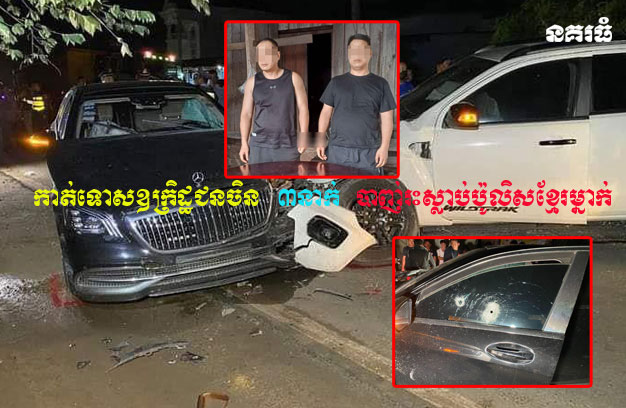ប្រភពដដែល បន្តថា ភ្លាមៗពេលនោះ ស្រាប់តែមានរថយន្ត ១គ្រឿងទៀត ម៉ាកឡិចស៊ីស មិនចាំស្លាកលេខ បានបើកមកពីក្រោយរថយន្តមែរសឺដេស រួចបានដកកាំភ្លើងវែងខ្លី បាញ់ស្រោចទៅលើរថយន្តមែរសឺដេស បណ្តាលឱ្យមានអ្នករងរបួសធ្ងន់ ២នាក់ (ចិនម្នាក់ ខ្មែរម្នាក់) ហើយក្រុមខ្មាន់កាំភ្លើងទាំងនោះ បានចាប់បុរសជនជាតិចិន ម្នាក់ ដែលជិះរថយន្តមែរសឺដេស  រុញចូលក្នុងរថយន្ត បើកគេចចេញទៅបាត់តែម្តង។
