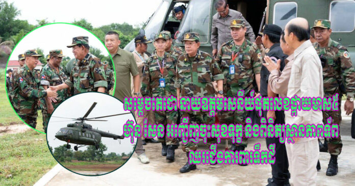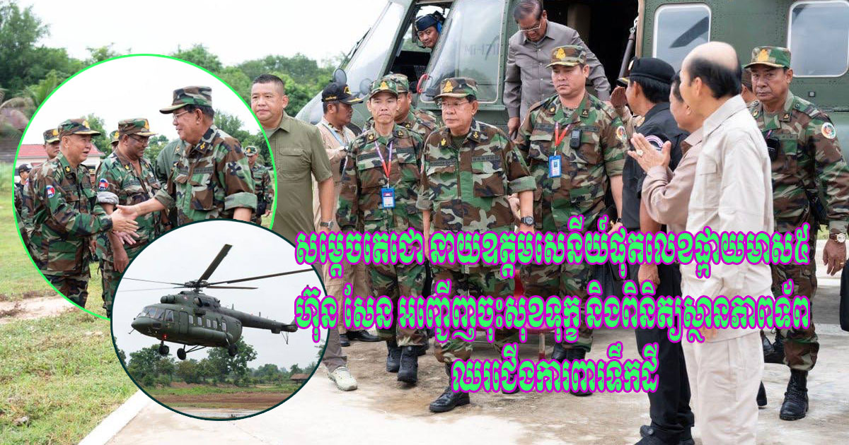 សម្តេចតេជោ នាយឧត្តមសេនីយ៍ផុតលេខផ្កាយមាស៥ ហ៊ុន សែន ប្រធានព្រឹទ្ធសភាកម្ពុជា នៅព្រឹកថ្ងៃព្រហស្បតិ៍ ១កើត ខែអាសាឍ ឆ្នាំម្សាញ់ សប្ដស័ក ព.ស.២៥៦៩ ត្រូវនឹងថ្ងៃទី២៦ ខែមិថុនា ឆ្នាំ២០២៥នេះ អញ្ជើញចុះសួរសុខទុក្ខ និងពិនិត្យស្ថានភាពកងទ័ពកម្ពុជា ដែលកំពុងឈរជើងដ៏អង់អាចក្លាហានបំផុតការពារទឹកដីជាប់ព្រំដែនថៃ។