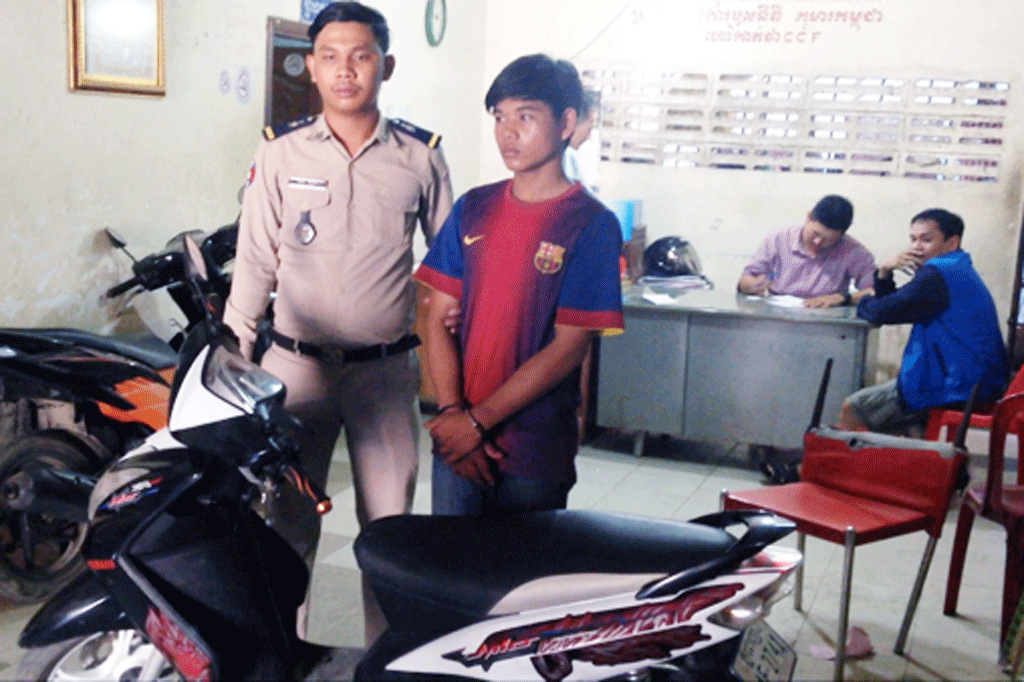 បើតាមសម្តីពីលោក ឯម ភារី នាយប៉ុស្តិ៍ស្តីទីស្ទឹងមានជ័យបានរាប់រៀបអោយដឹងថា កាលពីម៉ោង ៣និង២០នាទីរសៀល ថ្ងៃទី៤ ខែមីនា ឆ្នាំ២០១៧ ជនរងគ្រោះបានជិះម៉ូតូខាងលើចេញមកពីផ្ទះ ជិះយកទៅទុកនៅផ្សារស្ទឹងមានជ័យថ្មីជាន់ទីបួនដែលជាកន្លែងធ្វើការ ហើយគាត់ក៏បានចាក់ សោកម៉ូតូទុកចោលនៅកន្លែងចតរថយន្តរួចដើរចូលទៅធ្វើការនៅក្នុងក្រុមហ៊ុន លុះមួយសន្ទុះក្រោយមកក៏ស្រាប់តែជនសង្ស័យខាងលើរួមទាំងបក្សពួកម្នាក់ទៀតឈ្មោះ ភណ្ឌ ភេទប្រុស អាយុ១៧ឆ្នាំ មុនរបរនិងកន្លែងស្នាក់នៅមិនពិតប្រាកដ ​បានដើរមកធ្វើសកម្មភាពលួច កាច់សោក​ម៉ូតូរបស់គាត់យកទៅបាត់ដោយសុវត្ថិភាព ខណះពេលដែលគាត់ចេញមកវិញបំរុង និងយកម៉ូតូជិះទៅផ្ទះក៏ស្រាប់បាត់ម៉ូតូ ហើយរូបគាត់ក៏បានទៅដាក់ពាក្យនៅប៉ុស្តិ៍នគរបានរដ្ឋបាល ស្ទឹងមានជ័យដើម្បីអោយសមត្ថកិច្ចជួយអន្តរាគមន៍។