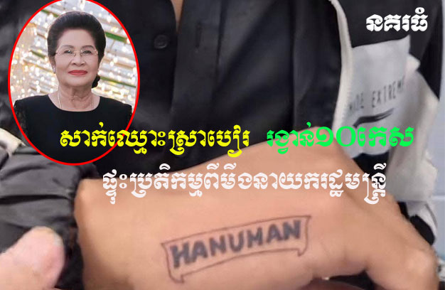 ភ្នំពេញ ៖ លោកស្រីឧកញ៉ា ហ៊ុន ស៊ីណាត ម្ដាយមីងសម្ដេចហ៊ុន ម៉ាណែត នាយករដ្ឋមន្រ្តី នៃព្រះរាជាណាចក្រកម្ពុជា និងត្រូវជាប្អូនស្រីសម្ដេចហ៊ុន សែន ប្រធានព្រឹទ្ធសភា នៃព្រះរាជាណាចក្រកម្ពុជា បានប្រតិកម្ម បន្ទាប់ពីបានឃើញព័ត៌មានផ្សព្វផ្សាយនៅតាមបណ្ដាញសង្គម ថា យុវជនខ្មែរ នាំគ្នាសម្រុកទៅចាក់សាក់ឈ្មោះស្រា បៀរ Hanuman (ហនុមាន) នៅលើរាងកាយ ដើម្បីយករង្វាន់ស្រាបៀរ ចំនួន១០កេស ។