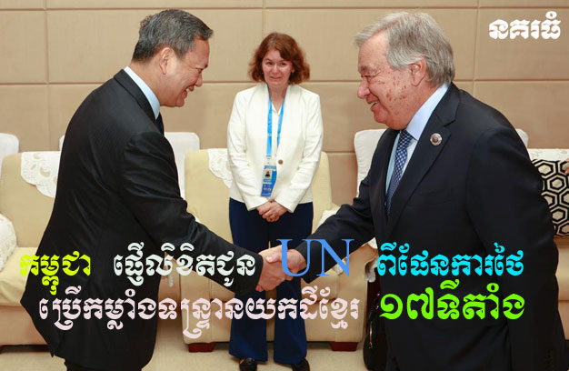 ភ្នំពេញ ៖ នាយករដ្ឋមន្ត្រី នៃព្រះរាជាណាចក្រកម្ពុជា សម្តេច ហ៊ុន ម៉ាណែត បានលិខិតផ្ញើជូនលោក អាង់តូនីញ៉ូ ហ្គូទែររេស (António Guterres) អគ្គលេខាធិការអង្គការសហប្រជាជាតិ (UN) ពាក់ព័ន្ធជម្លោះកម្ពុជា-ថៃ ដោយជម្រាបជូនពីផែនការប្រើកម្លាំងរបស់ថៃ ដើម្បីឈ្លានពាន ដណ្តើមយកទីតាំង ១៧កន្លែង នៅភាគខាងលិច និងនិរតី នៃប្រទេសកម្ពុជា ចាប់ពីខេត្តពោធិ៍សាត់ ដល់ខេត្តកោះកុង ។ ជាមួយនេះ កម្ពុជា បានស្នើសុំការគាំទ្រពីអង្គការសហប្រជាជាតិ ក្នុងការជំរុញឲ្យភាគីថៃ គោរពបទឈប់បាញ់ ឱ្យបានពេញលេញ រើលួសបន្លា ប្រគល់ដី-ផ្ទះ ឱ្យពលរដ្ឋខ្មែរវិញ បញ្ឈប់សកម្មភាពរំលោភលើអធិបតេយ្យរបស់កម្ពុជា និងដោះលែងទាហានកម្ពុជា ទាំង១៨នាក់វិញ ។