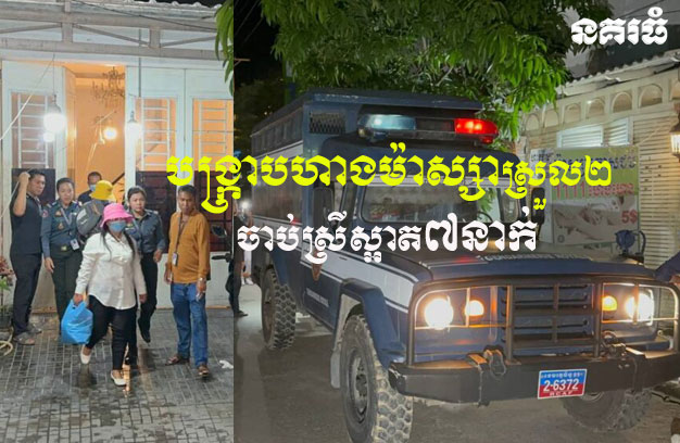 ភ្នំពេញ ៖ កម្លាំងកងរាជអាវុធហត្ថរាជធានីភ្នំពេញ សហការជាមួយកម្លាំងកងរាជអាវុធហត្ថមូលដ្ឋានខណ្ឌពោធិ៍ សែនជ័យ ឆ្មក់បង្ក្រាប ទីតាំងហាងម៉ាស្សា កោសជប់ ២ទីតាំង ជាប់គ្នា ដែលលួចបង្កប់សេវាកម្មជួញដូរផ្លូវភេទ ឃាត់ខ្លួននារី ចំនួន៧នាក់ និងវត្ថុតាងមួយចំនួន។