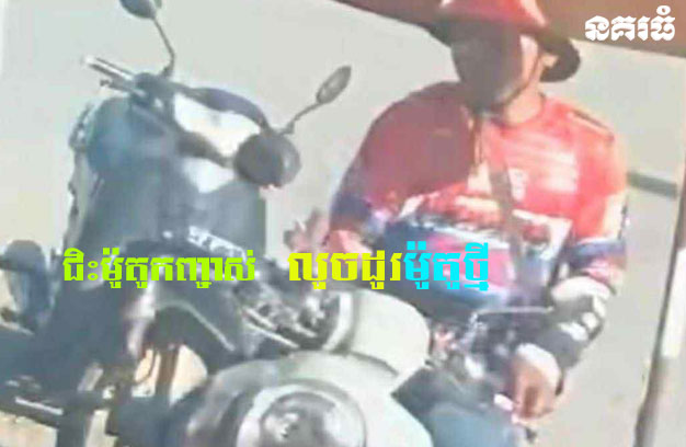 ខេត្តបាត់ដំបង ៖ ជនសង្ស័យម្នាក់ បានជិះម៉ូតូស៊េរីចាស់ ១គ្រឿង ទៅឈប់នៅខាងមុខហាងលក់ទូរស័ព្ទ មួយកន្លែង រួចចុះលួចយកម៉ូតូស៊េរីថ្មី របស់អ្នកលក់ទូរស័ព្ទ ជិះចេញដោយសុវត្ថិភាព ដោយបន្សល់ទុកម៉ូតូកញ្ចាស់ នៅនឹងកន្លែងកើតហេតុ។