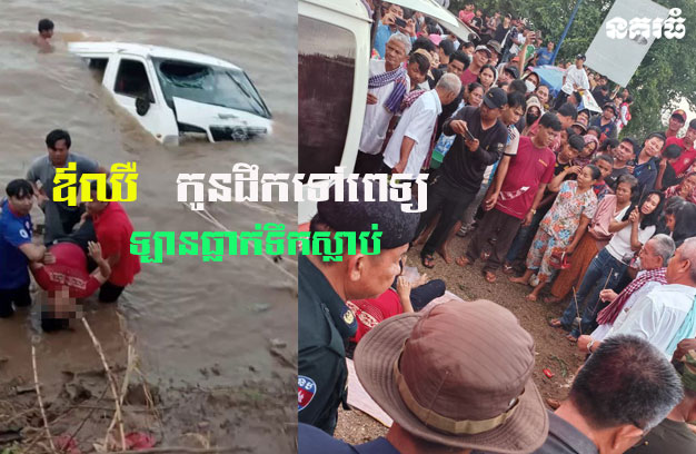 ឪឈឺ កូនដឹកទៅពេទ្យ ឡានធ្លាក់ទឹកស្លាប់