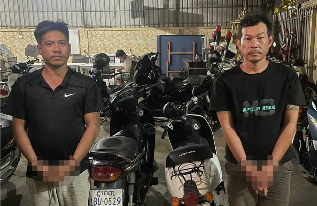 ជនសង្ស័យទាំង២នាក់ ដែលត្រូវសមត្ថកិច្ចឃាត់ខ្លួន ទី១-ឈ្មោះគៀង ចៅសំ ហៅជ័យ ភេទប្រុស អាយុ៣២ឆ្នាំ មុខរបរមិនពិតប្រាកដ ស្នាក់នៅបន្ទប់ជួល ភូមិប្រការ សង្កាត់ព្រៃស ខណ្ឌដង្កោ និងទី២-ឈ្មោះម៉ែន វិចិត្រ ភេទប្រុស អាយុ៣៤ឆ្នាំ មុខរបរមិនពិតប្រាកដ មានលំនៅ សង្កាត់ផ្សារដើមគ ខណ្ឌទួលគោក។ ចំពោះវត្ថុតាងចាប់យក រួមមាន ១-ម៉ូតូម៉ាកហុងដា ឌ្រីម សេ១២៥ ពណ៌ខ្មៅ សេរីឆ្នាំ២០១៣ ពាក់ស្លាកលេខ ភ្នំពេញ 1BU-0529 ជាជនរងគ្រោះឈ្មោះហួន ចន្ធី ភេទប្រុស អាយុ៤១ឆ្នាំ មុខរបរលក់ដូរ មានលំនៅ ផ្ទះលេខ A08 ផ្លូវ៥០ម៉ែត្រ ស្ថិតនៅភូមិប្រការ សង្កាត់ព្រៃស ខណ្ឌដង្កោ។ ២-ម៉ូតូម៉ាក Today ពណ៌ស ពាក់ស្លាកលេខ ភ្នំពេញ 1GG- 0993  ចំនួន១គ្រឿង (មធ្យោបាយដែលជនសង្ស័យជិះធ្វើសកម្មភាព)។ ៣-ទូរស័ព្ទដៃម៉ាក OPPO ពណ៌ខ្មៅ ចំនួន១គ្រឿង (ជារបស់ជនសង្ស័យ)។