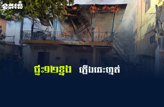 ភ្នំពេញ ៖ ផ្ទះឈើប្រក់ស័ង្កសី ចំនួន ១២ខ្នង ជាប់ៗគ្នា ត្រូវបានអគ្គិភ័យឆាបឆេះយ៉ាងសន្ធោសន្ធៅ អស់ទាំង ស្រុង ផ្អើលពលរដ្ឋនិងសមត្ថកិច្ច ចុះអន្តរាគមន៍។
