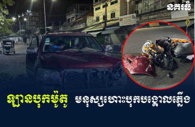 រាជធានីភ្នំពេញ ៖ បុរសម្នាក់ វ័យជាង ២០ឆ្នាំ បានបាត់បង់ជីវិតភ្លាមៗនៅនឹងកន្លែង ខណៈជិះម៉ូតូ ឆ្លងស្តុបផ្លូវ ជា សុផារ៉ា មានរថយន្តមួយគ្រឿង បើកបុកពេញទំហឹង បណ្តាលឲ្យប្លោងទៅផ្ទប់បង្គោលភ្លើង ។