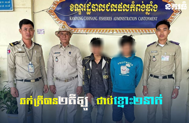លោកលី ឡា នាយខណ្ឌរដ្ឋបាលជលផលនៃមន្ទីរកសិកម្ម រុក្ខាប្រមាញ់និងនេសាទខេត្តកំពង់ឆ្នាំង បានឱ្យដឹងថា កម្លាំងខណ្ឌរដ្ឋបាលជលផល បានសហការជាមួយផ្នែករដ្ឋបាលជលផលផ្សារឆ្នាំង សង្កាត់រដ្ឋបាលកំពង់ លែង បានសហការជាមួយកម្លាំងអធិការដ្ឋាននគរបាលស្រុកកំពង់លែង ចុះចាប់ឃាត់ខ្លួនជនសង្ស័យចំនួន២នាក់ ដែលកំពុងធ្វើសកម្មភាពឆក់ត្រីក្នុងបឹងក្នុងភូមិត្របែក ឃុំត្រងិល ស្រុកកំពង់លែង។