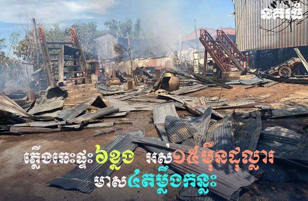 ខេត្តក្រចេះ ៖ លំនៅឋានរបស់ប្រជាពលរដ្ឋ ចំនួន៦ខ្នង ត្រូវបានអគ្គិភ័យឆាបឆេះ បណ្តាលឱ្យខូចខាតគិតជាទឹកប្រាក់ ប្រមាណជាង១៥ម៉ឺនដុល្លារ និងឆេះមាស ៤តម្លឹងកន្លះ។