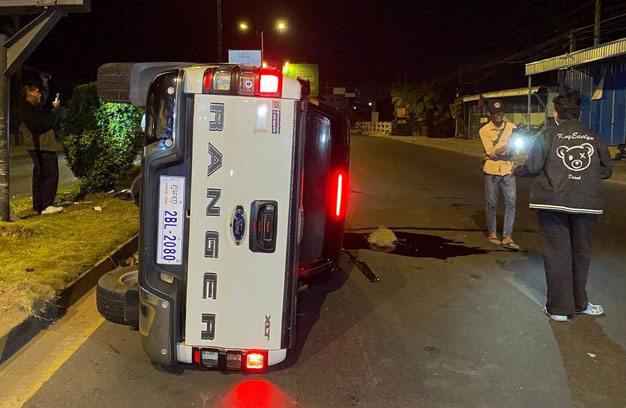 តាមប្រភពពីកន្លែងកើតហេតុ បានឱ្យដឹងថា មុនពេលកើតហេតុ គេឃើញរថយន្ត ១គ្រឿង ម៉ាក FORD RANGER ពណ៌ស ពាក់ស្លាកលេខ ភ្នំពេញ 2BL-2080 បើកបរដោយបុរសម្នាក់ ធ្វើដំណើរតាមបណ្តោយផ្លូវជាតិលេខ 6A ទិសដៅពីត្បូង ទៅជើង ក្នុងល្បឿនលឿន មិនប្រយ័ត្នបានរេចង្កូតទៅបុកឡើងសួនច្បារពុះចែកទ្រូងផ្លូវ រួចបន្តទៅបុកប៉ាណូផ្សាយពាណិជ្ជកម្ម បណ្តាលឱ្យបាក់ទ្រត ចំនួន១ដើម ចំណែករថយន្តបង្កហេតុ បានក្រឡាប់ផ្ងារជើង ខូចខាតធ្ងន់ សំណាងល្អមិនបង្កឱ្យមានគ្រោះថ្នាក់ដល់មនុស្ស ហើយភ្លាមនោះ ម្ចាស់រថយន្ត បានប្រមូលយកសម្ភារៈមានតម្លៃ ចេញពីក្នុងរថយន្ត រួចគេចពីកន្លែងកើតហេតុបាត់។
