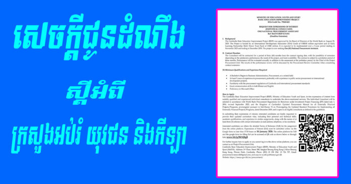 Homeព័ត៌មានជាតិសេចក្តីជូនដំណឹង ស្តីអំព ក្រសួងអប់រំ យុវជន និងកីឡា ព័ត៌មានជាតិព្រឹត្តិការណ៍សង្គម សេចក្តីជូនដំណឹង ស្តីអំព ក្រសួងអប់រំ យុវជន និងកីឡា By Davin January 10, 2026 0 0 Share FacebookTwitterPinterestWhatsApp RELATED ARTICLES ព័ត៌មានជាតិ សេចក្តីជូនដំណឹង ស្តីអំព ក្រសួងអប់រំ យុវជន និងកីឡា January 10, 2026 ព័ត៌មានជាតិ សេចក្តីជូនដំណឹង ស្តីអំព ក្រសួងអប់រំ យុវជន និងកីឡា January 10, 2026 ព័ត៌មានជាតិ សេចក្តីជូនដំណឹង ស្តីអំព ក្រសួងអប់រំ យុវជន និងកីឡា January 10, 2026