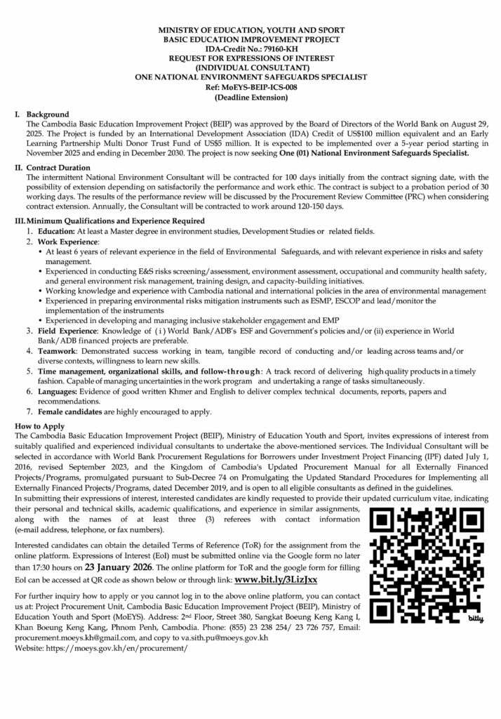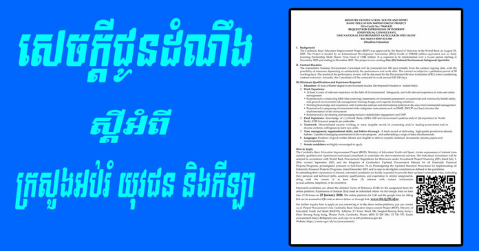 Homeព័ត៌មានជាតិសេចក្តីជូនដំណឹង ស្តីអំពី ក្រសួងអប់រំ យុវជន និងកីឡា ព័ត៌មានជាតិ សេចក្តីជូនដំណឹង ស្តីអំពី ក្រសួងអប់រំ យុវជន និងកីឡា By Davin January 16, 2026 0 0 Share FacebookTwitterPinterestWhatsApp RELATED ARTICLES ព័ត៌មានជាតិ សេចក្តីជូនដំណឹង ស្តីអំពី ក្រសួងអប់រំ យុវជន និងកីឡា January 16, 2026 ព័ត៌មានជាតិ រដ្ឋបាលរាជធានីភ្នំពេញ គ្រោងដាក់ឱ្យពលរដ្ឋទទួលសេវាច្រកចេញចូលតែមួយ តាមអនឡាញ January 16, 2026 ព័ត៌មានជាតិ ធាតុអាកាសតំបន់ជួរភ្នំកម្ពុជា បន្តចុះត្រជាក់ដល់ថ្ងៃ១៧មករា January 16, 2026