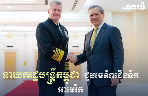ភ្នំពេញ ៖ នៅព្រឹកថ្ងៃចន្ទ ទី២៦ ខែមករា ឆ្នាំ២០២៦ សម្តេច ហ៊ុន ម៉ាណែត នាយករដ្ឋមន្ត្រី នៃព្រះរាជាណាចក្រកម្ពុជា បានអនុញ្ញាតឱ្យនាយឧត្តមនាវី សាមូអែល ប៉ាប៉ារ៉ូ (Samuel Paparo) មេបញ្ជាការ នៃបញ្ជាការដ្ឋានឥណ្ឌូ-ប៉ាស៊ីហ្វិក នៃកងទ័ពជើងទឹកអាមេរិក ជួបសម្តែងការគួរសមនិងពិភាក្សាការងារ នៅវិមានសន្តិភាព។នាយឧត្តមនាវី Samuel Paparo បំពេញទស្សនកិច្ចនៅកម្ពុជា ស្របពេលជាមួយនឹងនាវាចម្បាំងអាមេរិក ចូលមកចតនៅមូលដ្ឋានសមុទ្ររាម របស់កម្ពុជា ដើម្បីលើកកម្ពស់ទំនាក់ទំនងនិងកិច្ចសហប្រតិបត្តិការរវាងកងទ័ពជើងទឹកកម្ពុជា និងសហរដ្ឋអាមេរិក។