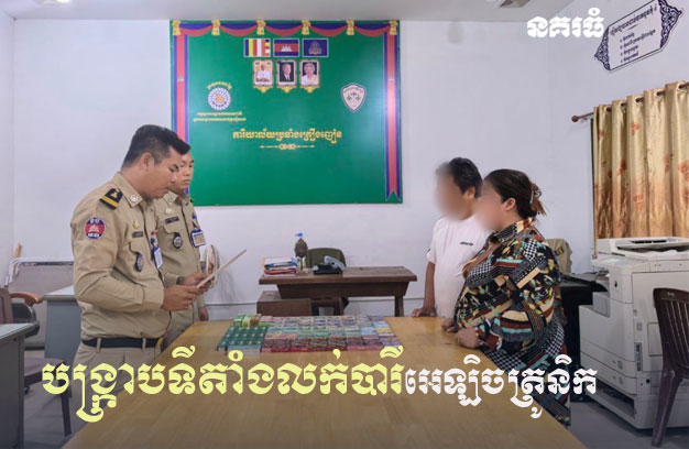 ខេត្តសៀមរាបៈ កម្លាំងនគរបាលខេត្តសៀមរាប ចុះអនុវត្តវិធានការត្រួតពិនិត្យទីតាំងធ្វើអាជីវកម្មមួយកន្លែង រកឃើញម៉ាស៊ីននិងក្បាលបារីអេឡិចត្រូនិក ចំនួន១០១ប្រអប់ និងបានឃាត់ខ្លួនម្ចាស់ទីតាំង យកមកសាកសួរ ចាត់ការតាមច្បាប់។