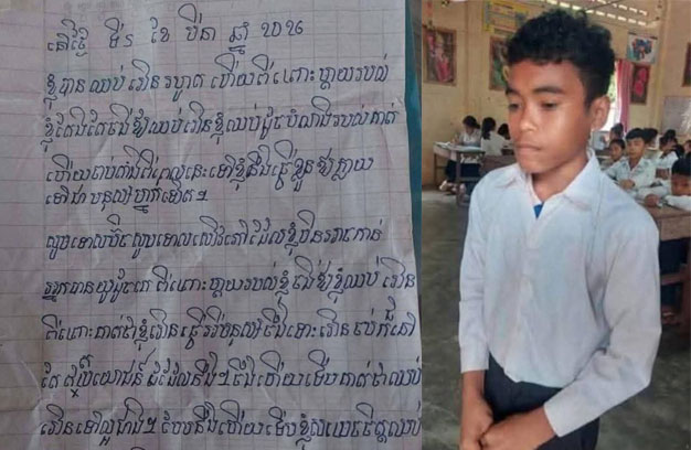 ចំពោះសំណេរក្នុងលិខិតរបស់ក្មេងប្រុសរូបនោះ មានខ្លឹមសារទាំងស្រុងថា “នៅថ្ងៃទី៥ ខែមីនា ឆ្នាំ២០២៦ ខ្ញុំបានឈប់រៀនរហូតហើយ ពីព្រោះម្តាយរបស់ខ្ញុំ តែងតែងចង់ឱ្យឈប់រៀន ខ្ញុំឈប់ដូចបំណងរបស់គាត់ហើយ ចាប់ តាំងពីពេលនេះទៅ ខ្ញុំនឹងធ្វើខ្លួនឱ្យក្លាយជាមនុស្សម្នាក់ ទៀត។ សូមទោសប៊ិក សូមទោសសៀវភៅ ដែលខ្ញុំមិនអាចកាន់អ្នកបានយូរដូចគេ ពីព្រោះម្តាយរបស់ខ្ញុំ ចង់ឱ្យខ្ញុំឈប់រៀន ពីព្រោះគាត់ថា រៀនធ្វើអី មនុស្សចឹង ទោះ រៀនចប់ ក៏នៅតែឥតប្រយោជន៍ដដែលហ្នឹង។ ចឹងហើយ ទើបគាត់ថា ឈប់រៀនទៅល្អជាង។ បែបហ្នឹងហើយ ទើបខ្ញុំសម្រេចចិត្តឈប់រៀន តាមបំណងគាត់…”។