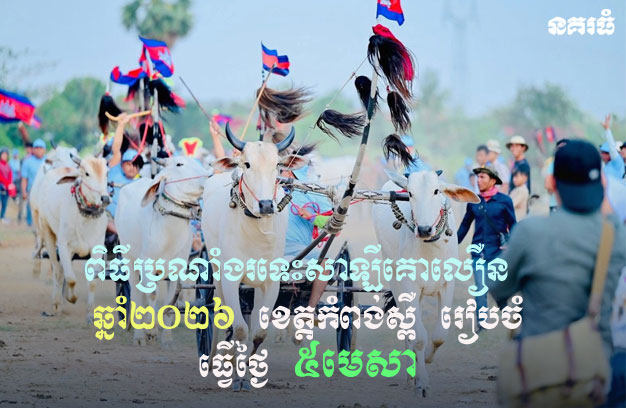 ខេត្តកំពង់ស្ពឺ ៖ មន្ទីរវប្បធម៌ និងវិចិត្រសិល្បៈ ខេត្តកំពង់ស្ពឺ បានសហការជាមួយរដ្ឋបាលខេត្តកំពង់ស្ពឺ សហ ភាពសហព័ន្ធយុវជនកម្ពុជាខេត្តកំពង់ស្ពឺ រដ្ឋបាលក្រុងច្បារមន និងសមាគមរទេះសាឡីគោលឿន ខេត្តកំពង់ស្ពឺ ប្រារព្ធពិធីប្រណាំងរទេះសាឡីគោលឿន ឆ្នាំ២០២៦ ដែលនឹងប្រព្រឹត្តទៅនៅថ្ងៃអាទិត្យ ទី៥ ខែមេសា ឆ្នាំ២០២៦ វេលាម៉ោង ៨:០០នាទីព្រឹក ស្ថិតក្នុងភូមិស្លោទី១ សង្កាត់រការធំ ក្រុងច្បារមន ខេត្តកំពង់ស្ពឺ។