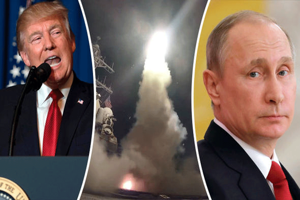 មេដឹកនាំរុស្ស៊ីលោកវ៉្លាឌីមៀរ ពូទីន បានហៅការវាយប្រហាររបស់សហរដ្ឋអាមេរិកថាជាសកម្មភាពឈ្លានពានប្រឆាំងនិងអធិបតេយ្យភាពរដ្ឋមួយនិងរំលោភបំពានច្បាប់អន្តរជាតិទៀតផង ។ រដ្ឋាភិបាលរុស្ស៊ីបានថ្លែងថាខ្លួនបាននិងកំពុងផ្អាកចុះកិច្ចព្រមព្រៀងជាមួយក្នុងការបង្រួមហានិភ័យនៃការប៉ះទង្គិចគ្នាតាមដែនអាកាសរវាងយន្តហោះចម្បាំងរុស្ស៊ីនិងអាមេរិកក្នុងដែនអាកាសស៊ីរីជាបណ្តោះអាសន្ន ។ រុស្ស៊ីថែមទាំងបានស្នើឲ្យក្រុមប្រឹក្សាសន្តិសុខអង្គការសហប្រជាជាតិកោះប្រជុំជាបន្ទាន់ផងដែរ។