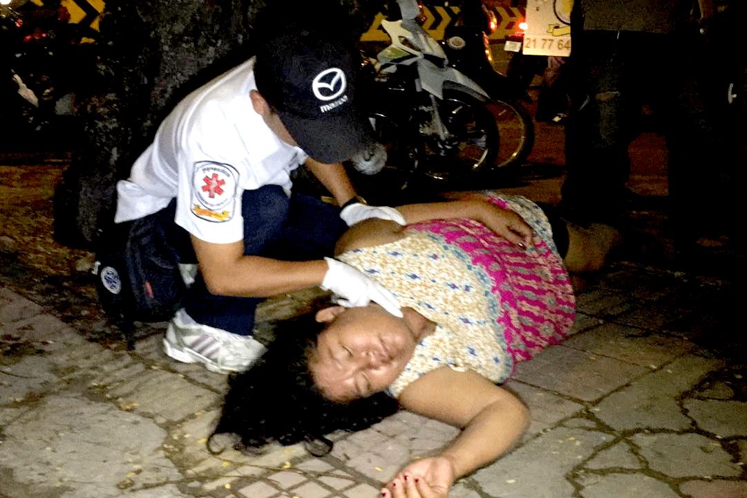 ស្រ្តីខាងលើត្រូវសមត្ថកិច្ចហៅរថយន្តសង្គ្រោះដឹកយកទៅព្យាបាលនៅមន្ទីរពេទ្យមិត្តភាព ខ្មែរ-សូវៀត៕