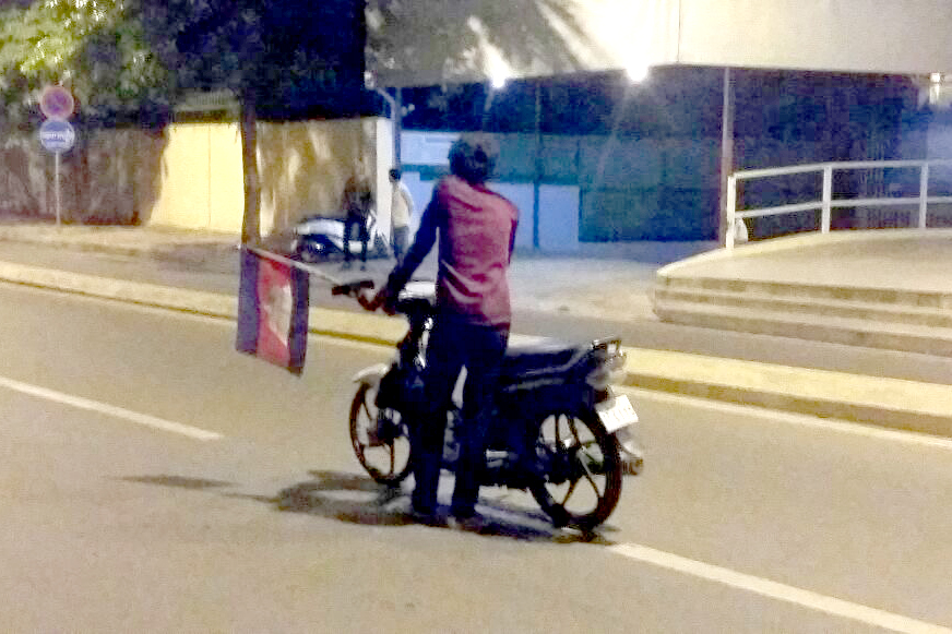 ភ្នំពេញ ៖ បុរសម្នាក់បែកថ្នាំម្នាក់ជិះម៉ូតូទៅដឹកសង្សារចេញពីធ្វើការ តែដោយសារប្រើប្រាស់ថ្នាំញៀនលើសចំណុះ បានជិះម៉ូតូផ្តួលចោលនៅលើស្ពានអាកាស៧មករា រួចហើយរត់គ្រវីទង់ជាតិ ស្រែកឡូឡា បង្កឲ្យមានការភ្ញាក់ផ្អើលកាលពីវេលាម៉ោង២និង៣០នាទីរំលងអធ្រាត្រ ឈានចូលថ្ងៃទី១៥ ខែមិថុនា ឆ្នាំ២០១៧ ត្រង់ចំណុចខាងលើស្ពានអាកាស៧មករា ត្រើយខាងកើត ស្ថិតក្នុងសង្កាត់ទឹកល្អក់ទី១ ខណ្ឌទួលគោក។