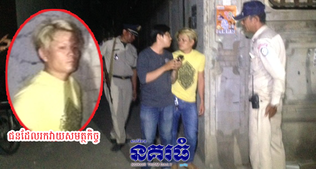 បុរសដែលរករឿងសមត្ថកិច្ច ពាក់អាវយឺតដៃខ្លី ពណ៌លឿង សក់ពណ៌ទង់ដែងរូបនោះ មិនបានឲ្យស្គាល់ឈ្មោះនោះទេ។