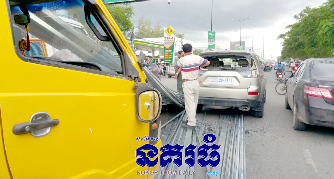 ភ្នំពេញ៖ រថយន្តទួសរឺសដឹកដែកចងពីលើមួយគ្រឿង ខណៈជាន់ហ្វ្រាំងបង្អង់ឈប់ ស្រាប់តែដាច់ខ្សែចំណង បណ្តាលឲ្យធ្លាក់ដែករអិលទៅជុងពីក្រោយរថយន្តមួយគ្រឿងទៀត ដែលបើកស្របគ្នា តែសំណាងល្អមិនមានអ្នករងរបួស គ្រាន់តែបែកកញ្ចក់រថយន្ត។ ករណីនេះបង្ករភ្ញាក់ផ្អើលនៅមុខវត្តទឹកថ្លា ផ្លូវសហព័ន្ធរុស្សី ភូមិចុងថ្នល់ខាងលិច សង្កាត់ទឹកថ្លា ខណ្ឌសែនសុខ។ អ្នកបើករថយន្តសងខាងមិនបានប្រាប់ពីអត្តសញ្ញាណ។