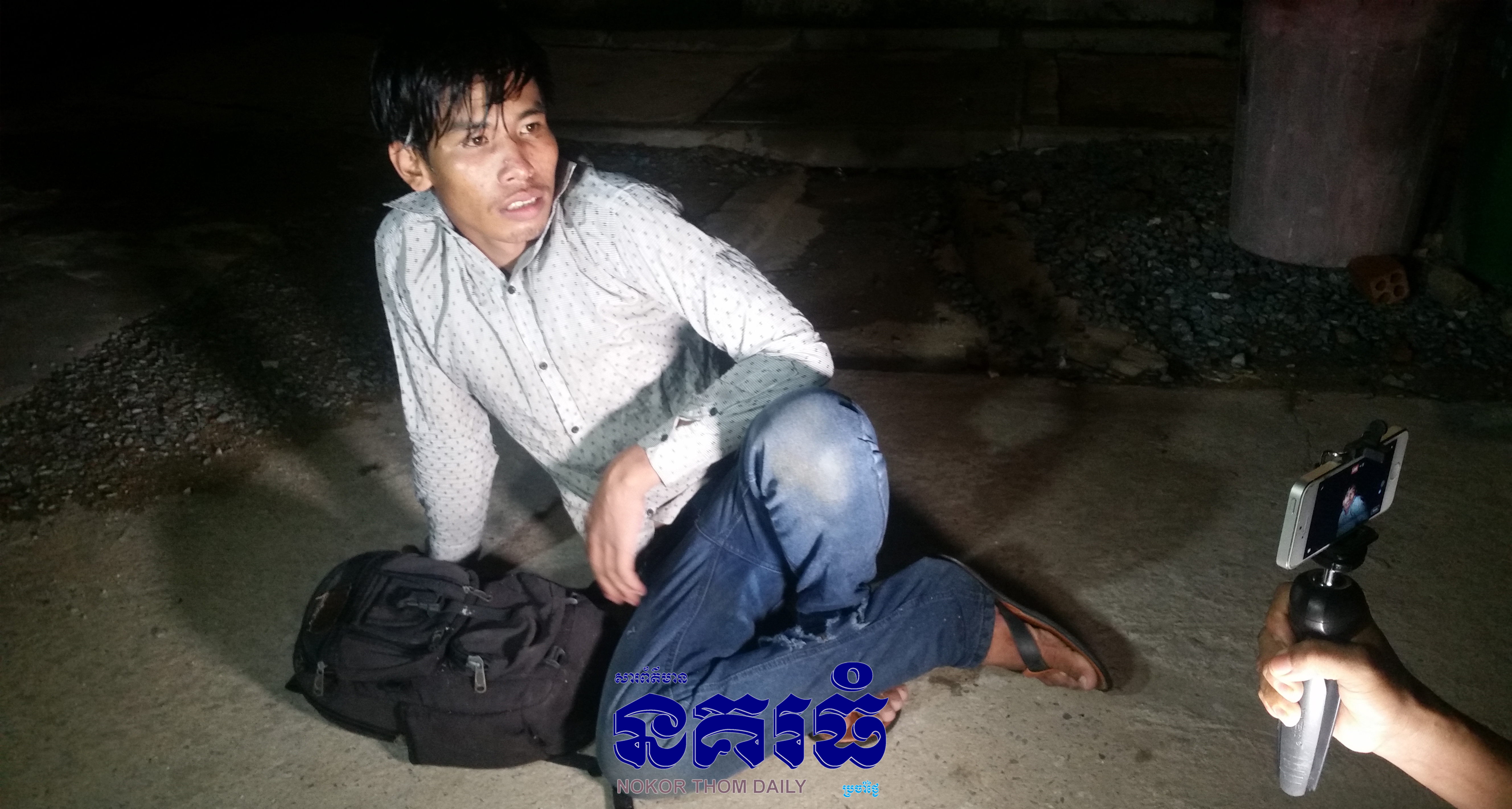 បើតាមការសារភាពពីជនសង្ស័យខាងលើ បានសារភាពថា ពីមុនគាត់ជាកម្មករសំណង់ ទើបតែធ្វើជាព្រូរថយន្តឲ្យអ្នកភូមិជាមួយគ្នាបាន១ថ្ងៃ ហើយមិនស្គាល់អ្វីទេ នៅយប់កើតហេតុ តៃកុងឡានបាននាំចូលដេកផ្ទះសំណាក់ នៅជិតកន្លែងកើតហេតុ បន្ទាប់មកតៃកុងរថយន្តបានចេញទៅរកស្រីស្នេហ៍ នៅឯម្តុំស្ពានជ្រោយចង្វារ ដោយបានទុករូបគេឲ្យនៅតែម្នាក់ឯង ។ លុះពេលតៃកុងរថយន្តទៅបាត់ រូបគេបានផឹកស្រាស្រវឹង ហើយមិនហ៊ាននៅក្នុងផ្ទះសំណាក់ខ្លាចលង ក៏៏បានរត់ចេញពីផ្ទះសំណាក់ ចេញមកផ្លូវវេងស្រេង ស្រាប់តែមានយុវជន២នាក់ ជិះម៉ូតូមួយគ្រឿង មិនចាំម៉ាក មកដល់បានចង្អុលមុខគាត់ ពេលនោះគាត់ភ័យខ្លាចពេក បានរត់ឡើងរបងរោងចក្រខាងលើតែម្តង ។
