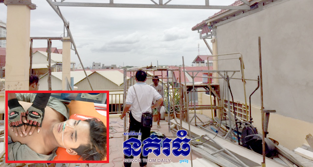 ភ្នំពេញ : កម្មករផ្សារដែកម្នាក់កំពុងតែឡើងលើរន្ទាផ្សារដំបូលដែក នៅជាន់ទី២ បណ្តាលឲ្យឆក់ខ្សែភ្លើងសន្លប់ស្តូកស្តឹង កាលពីវេលាម៉ោង១១ថ្ងៃត្រង់ ថ្ងៃទី១៥ ខែកក្ដដា ឆ្នាំ២០១៧ នៅចំណុចផ្ទះគ្មានលេខ ផ្លូវលេខ១០ ក្រុម២១ ស្ថិតនៅភូមិទួលរកា១ សង្កាត់ចាក់អង្រែក្រោម ខណ្ឌមានជ័យ ។ ជនរងគ្រោះមានឈ្មោះ ហួន ភេទប្រុស អាយុ២២ឆ្នាំ មុខរបរជាងផ្សារដែក ស្នាក់នៅជាមួយ មេជាងនៅសង្កាត់ភ្នំពេញថ្មី ខណ្ឌសែនសុខ ។