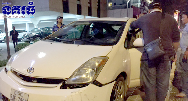 ភ្នំពេញ៖ បុរសម្នាក់ស្រវឹងស្រាជោគជាំ បើករថយន្តបង្កម៉ាកតូយ៉ូតាព្រូស ពណ៌ស ក្នុងល្បឿនយ៉ាងលឿនឆ្លងផ្លូវ ទៅបុកម៉ូតូចំពាក់កណ្តាលម៉ូតូពេញទំហឹង បណ្តាលឲ្យរងរបួសស្រាល ហើយរថយន្តបង្កព្យាយាមបើករត់ទៅបុកម៉ូតូ២គ្រឿងទៀត រងរបួសស្រាលនៅតែបន្តបើករត់គេចខ្លួន ត្រូវប្រជាពលរដ្ឋនិងសមត្ថកិច្ចឃាត់បាន ហេតុការណ៍នេះបានកើតឡើងកាលពីវេលាម៉ោង៩និង២០នាទីយប់ ថ្ងៃទី១០ ខែសីហា ឆ្នាំ២០១៧ តាមបណ្តោយផ្លូវព្រះមុនីវង្ស នៅចំណុចជិតមជ្ឍមណ្ឌល Rock ស្ថិតនៅក្នុងសង្កាត់បឹងត្របែក ខណ្ឌចំការមន។