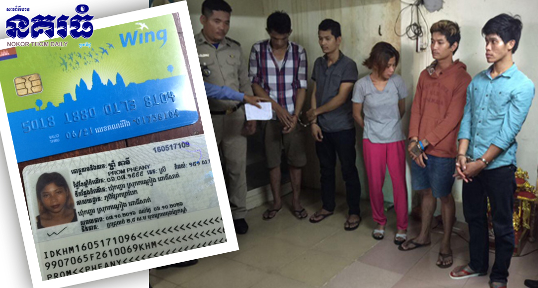 សមត្ថកិច្ចបានប្រាប់ថា ជនសង្ស័យទី១ មានឈ្មោះ ព្រំ ភានី ភេទស្រី អាយុ១៨ឆ្នាំមុខរបរបុគ្គលិកខារ៉ាអូខេ ស្នាក់នៅផ្ទះសំណាក់ ឌី មនោរម្យ តាមផ្លូវ៣៧១ ស្ថិតនៅភូមិក្បាលទំនប់២ សង្កាត់បឹងទំពុន ខណ្ឌមានជ័យ (ជាមិត្តស្រី) ជាម្ចាស់គណនីឲ្យកាតសង្សាទៅបោកដកលុយ ទី២ មានឈ្មោះ សៀ វេងសៀ ភេទប្រុស អាយុ២០ឆ្នាំ មុខរបរមិនពិតប្រាកដស្នាក់នៅផ្ទះសំណាក់ ឌីមនោរម្យ ត្រូវជា (មិត្តប្រុស) ជាអ្នកប្រើកាតមិត្តស្រីដកលុយក្នុងគណនីជនរងគ្រោះ ទី៣ មានឈ្មោះ សេក សុភ័ក្រ្ត ភេទប្រុស អាយុ២៤ឆ្នាំ មុខរបរមិនពិតប្រាកដ ស្នាក់នៅផ្ទះសំណាក់ខាងលើបន្ទប់ផ្សេងគ្នា បក្ខពួកជនសង្ស័យ ទី៤ មានឈ្មោះ ហេង សុធន ភេទប្រុស អាយុ២២ឆ្នាំ មុខរបរមិនពិតប្រាកដ ស្នាក់នៅផ្ទះសំណាក់ខាងលើ បក្ខពួកជនសង្ស័យ ទី៥ មានឈ្មោះ ឃិន ភារម្យ ភេទប្រុស អាយុ៣២ឆ្នាំ មុខរបរមិនពិតប្រាកដ ស្នាក់នៅផ្ទះសំណាក់ខាងលើជាបក្ខពួក បានសារភាពប្រាប់សមត្ថកិច្ច ខ្លួនបានចូលរួមចំណែកក្នុងករណីដកលុយតាមគណនីវីង ហើយលុយកាក់បានចាយផឹកសីុលេងល្បែងហ្គេមបាញ់ត្រីអស់ហើយ ។