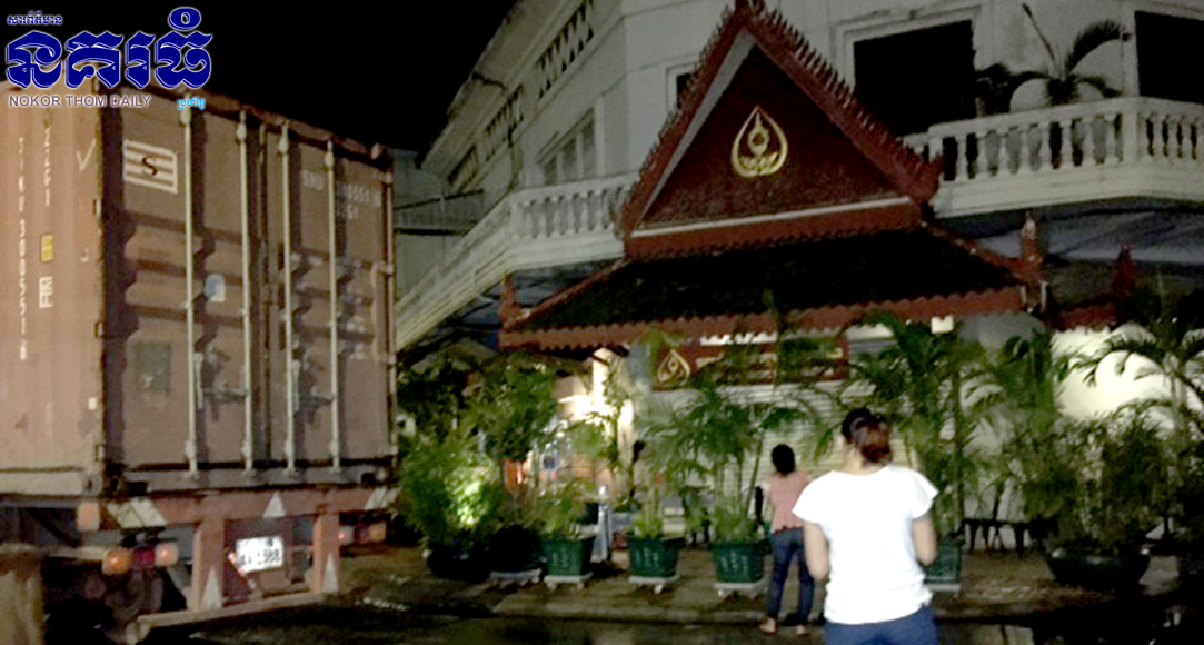ភ្នំពេញ៖ បុរសម្នាក់បើករថយន្តកុងតឺន័រដឹកទំនិញមកពីកំពង់សោម យកមកទម្លាក់នៅម្តុំផ្សារតាប៉ាង មកដល់ចំណុចផ្លូវបត់ស្តាំអត់ផុត ដោយសារមានរថយន្ត២គ្រឿង ចតនៅតាមចិញ្ចើមផ្លូវ រថយន្តកុងតឺន័របានបើកថយក្រោយបន្តិច ដើម្បីបត់ម្តងទៀត ធ្វើឲ្យបុកដំបូលសំយ៉ាបផ្ទះប្រជាពលរដ្ឋ ធ្វើឲ្យខូចខាត តែមិនមានរងរបួសទេ ហេតុការណ៍នេះបានកើតឡើងកាលពីវេលាម៉ោង១០នឹង៣០នាទីយប់ ថ្ងៃទី២៩ ខែសីហា ឆ្នាំ២០១៧ តាមបណ្តោយផ្លូវ១៤៤ កែងផ្លូវ៤៩ នៅចំណុចម្តុំផ្សារតាប៉ាង ស្ថិតនៅក្នុងសង្កាត់ផ្សារថ្មី៣ ខណ្ឌដូនពេញ។