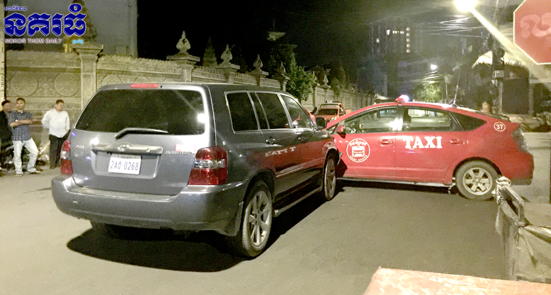 ភ្នំពេញ ៖ រថយន្តហាយលែនឌឺ បើកបរមិនគោរពស្លាកចរាចរណ៍ បានជ្រុលទៅបុករថយន្តតាក់ស៊ីម៉ែត្រ នៅចំណុចផ្លូវបំបែកជាប្រាំ បណ្តាលឲ្យរងការខូចខាតរថយន្តទាំងសងខាង ហើយរថយន្ត ដែលមិនគោរពស្លាកចរាចរណ៍បានទាមទារសំណង ហេតុការណ៍នេះបានកើតឡើងនៅវេលាម៉ោង១និង១៥នាទីរំលងអាធ្រាត្រ ឈានចូលថ្ងៃទី០១ ខែកញ្ញា ឆ្នាំ២០១៧ ក្រោយវត្តមហាមន្ត្រី ផ្លូវ១៩៣កែងនិងផ្លូវ២៨៤ សង្កាត់អូឡាំពិក ខណ្ឌចំការមន។