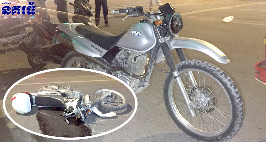 ភ្នំពេញ ៖ បុរសម្នាក់ដឹកសង្សារខ្លួនជិះម៉ូតូម៉ាក SL ពណ៌ទឹកប្រាក់ បើកឆ្លងស្តុប BS មិនបានប្រយ័ត្ន ក៏ត្រូវម៉ូតូ SL មួយគ្រឿងទៀត បុកបណ្តាលឲ្យរងរបួសធ្ងន់ម្នាក់ និងស្រាល២នាក់ ហេតុការណ៍នេះបានកើតឡើងកាលពីវេលាម៉ោង២រំលងអាធ្រាត្រ ឈានចូលថ្ងៃទី១៥ ខែកញ្ញា ឆ្នាំ២០១៧ តាមបណ្តោយផ្លូវព្រះមុនីវង្ស កែងផ្លូវកម្ពុជាក្រោម នៅចំណុចស្តុប BS ស្ថិតនៅក្នុងសង្កាត់មនោរម្យ ខណ្ឌ៧មករា។