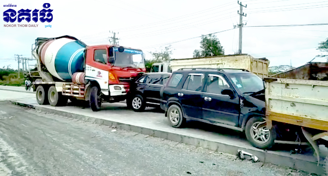 រថយន្តចំនួន៥គ្រឿង បុកបន្តកន្ទុយគ្នា បណ្តាលឲ្យរងការខូចខាតធ្ងន់ធ្ងរ