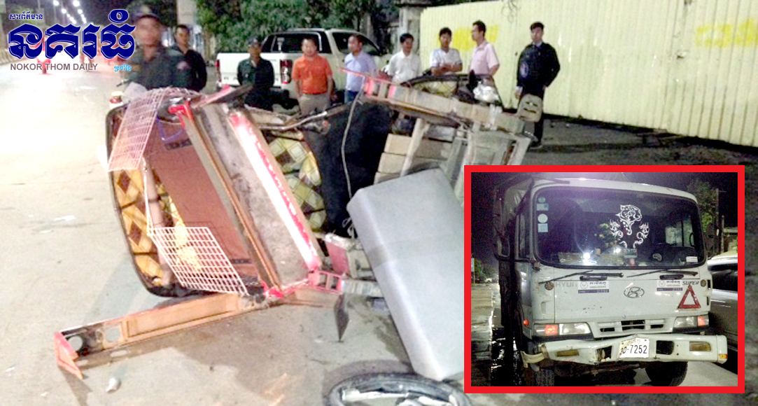 រថយន្តដឹកទំនិញបុករុឺម៉កម៉ូតូក្រឡាប់ រួចបើករត់បាន១០០ម៉ែត្រ ប្រជាពលរដ្ឋចាប់បាន